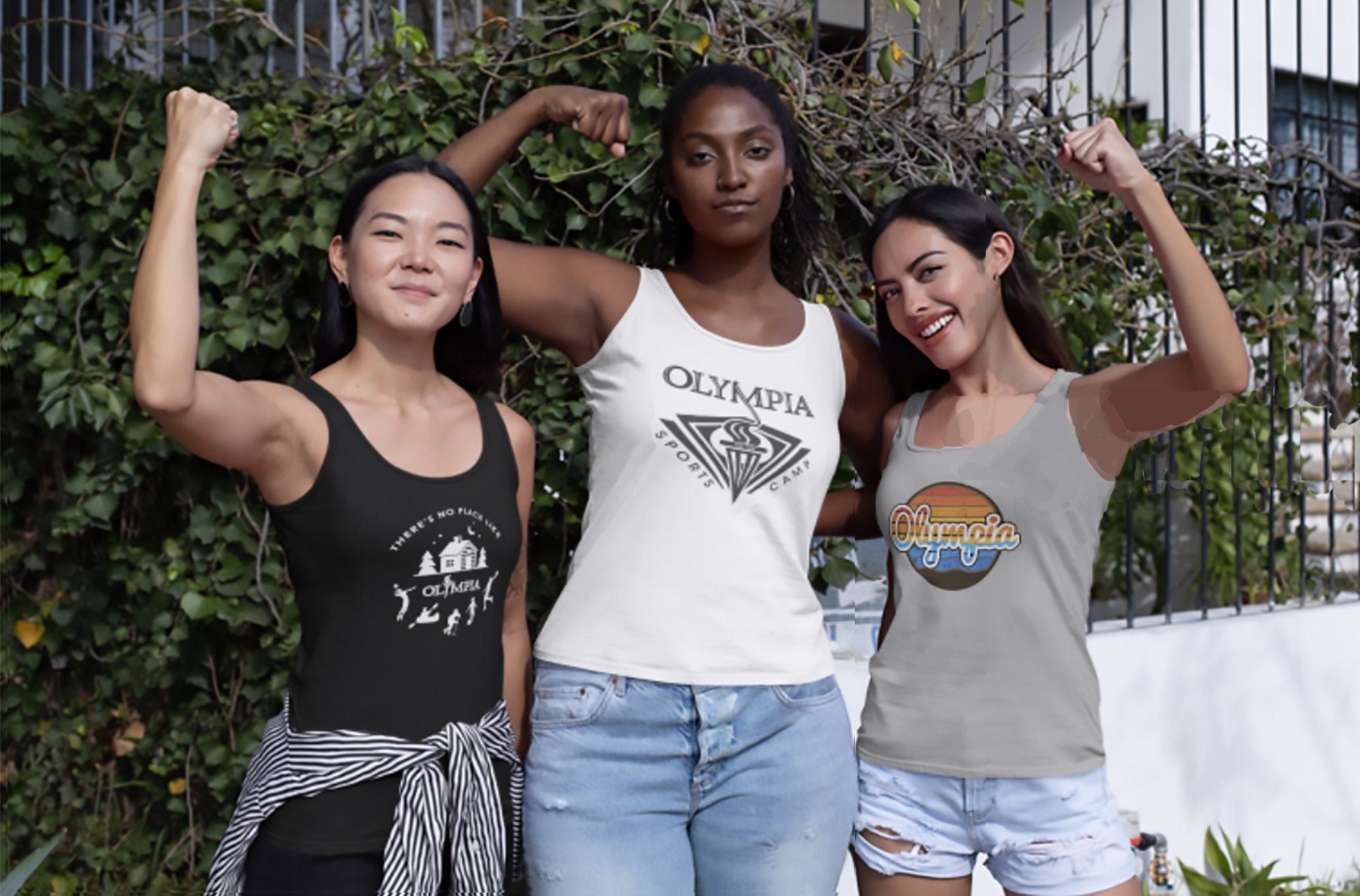 Shop a variety of Olympia spiritwear designs printed on lightweight women's racerback sleeveless tops.